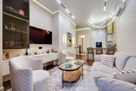 О КВАРТИРЕ: Качественная отделка. Выполнена разводка электрики, сантехники. Качественные напольные покрытия. Абсолютно новая мебель, кухонный гарнитур со встроенной техникой и предметы интерьера входят в стоимость.