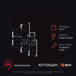 Продаётся 4-к квартира номер 541 общей площадью 99.1 кв.м. на 21-м этаже 29 этажного здания. Отделка Whitebox. Цена с учётом скидки.