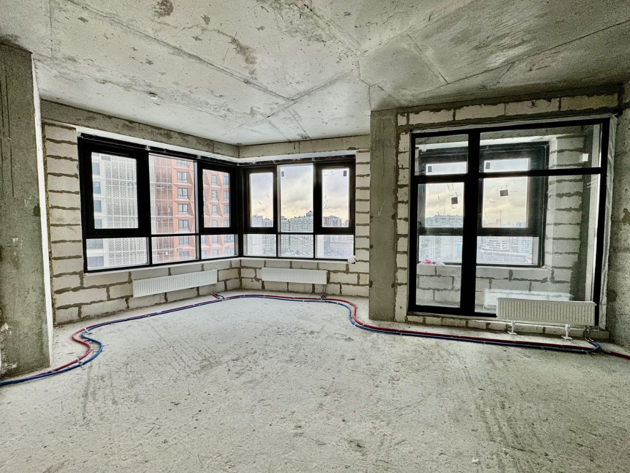 Общая площадь 84.2 кв.м., ЛУЧШАЯ планировка с кухней-гостиной и двумя изолированными комнатами, возможно сделать три изолированных комнаты, квартира без отделки с высокими потолками 3.15 метра, три мокрых точки, гардеробная комната, лоджия со стороны кухни.