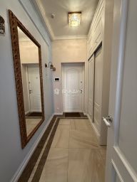 Санузел совмещенный .Объект полностью меблирован и оснащен необходимой бытовой техникой. Мебель вся изготовлена на заказ. В квартире выполнен дизайнерский ремонт с использованием качественных строительных материалов. Хорошая входная группа, чистый и аккуратный подъезд, доброжелательные соседи. На первом этаже сосредоточены магазины, на втором этаже -релакс -зона. Необычно используется крыша этого жилого комплекса-как смотровая площадка и как зона отдыха.