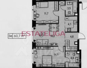 Id 59549. Квартира с 2-мя изолированными спальнями и кухней-гостиной в ЖК бизнес-класса Level Мичуринский. ЛУЧШАЯ ЦЕНА В КОМПЛЕКСЕ!