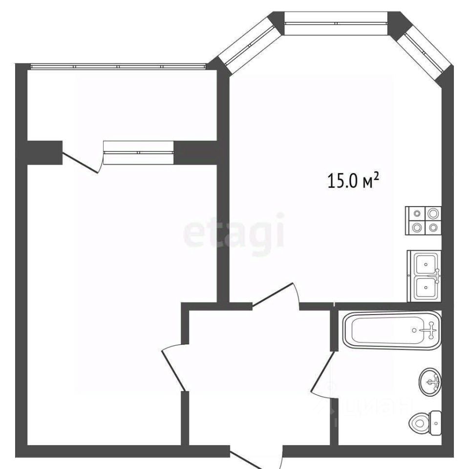 Планировка: Утепленная лоджия совмещенная с комнатой, кухня - гостиная, совмещенный санузел.