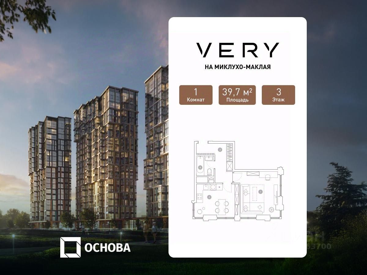 Продается 1-к квартира площадью 40.0 кв.м. на 3-м этаже