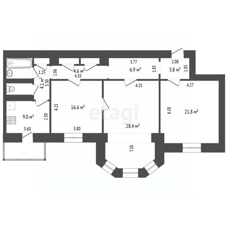 Жилая площадь 66,8 кв. м.