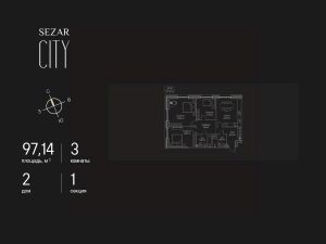 Продается 3-комнатная квартира в ЖК SEZAR CITY на 5 этаже. Общая площадь квартиры составляет 97,14 кв.м. Квартира без отделки. Срок сдачи - 2027 год.