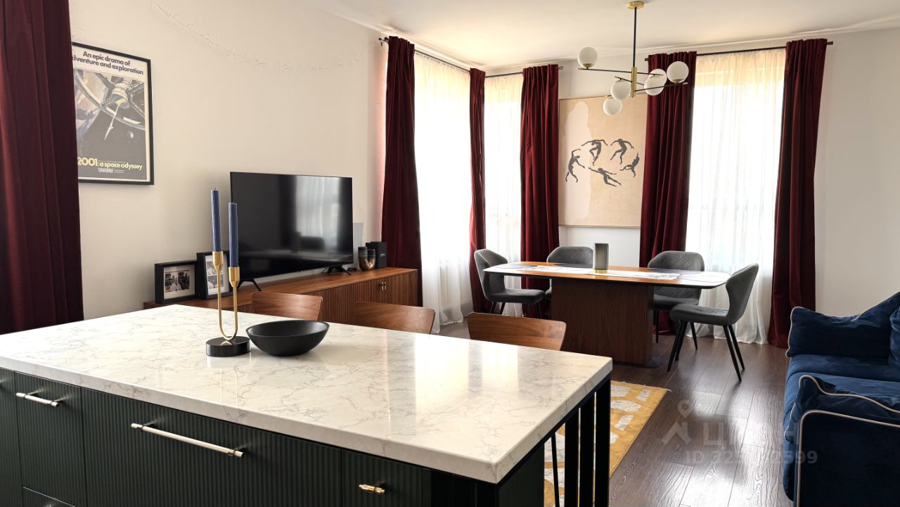 Просторная квартира c отделкой и мебелью площадью 105,4 м2 в ЖК LIFE -Варшавская. Квартира с 3-мя изолированными спальнями, включая мастер-спальню с гардеробной (17м2+6м2) и кухню-гостиную, площадью 34м2. Два совмещенных санузла.