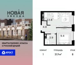Продаётся 1-к квартира 31.9 кв.м. на 8-м этаже 22 этажного дома, корпус 6 - Резиденция "Хабаровск". Без отделки.