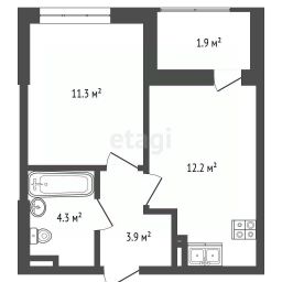 - площадь по ЕГРН 33.6 м² (за счет коэффициента лоджии)