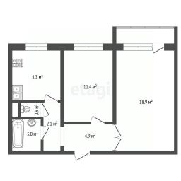 Общая площадь: 50.6 кв. м.