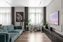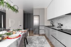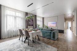 В квартире новый ремонт. Планировка продумана для комфортного семейного проживания: спальня с гардеробной и балконом, детская, два санузла, кабинет и большая гостиная с зоной кухни. Высокие потолки (3 м) и панорамные окна создают ощущение простора и наполняют комнаты естественным светом.