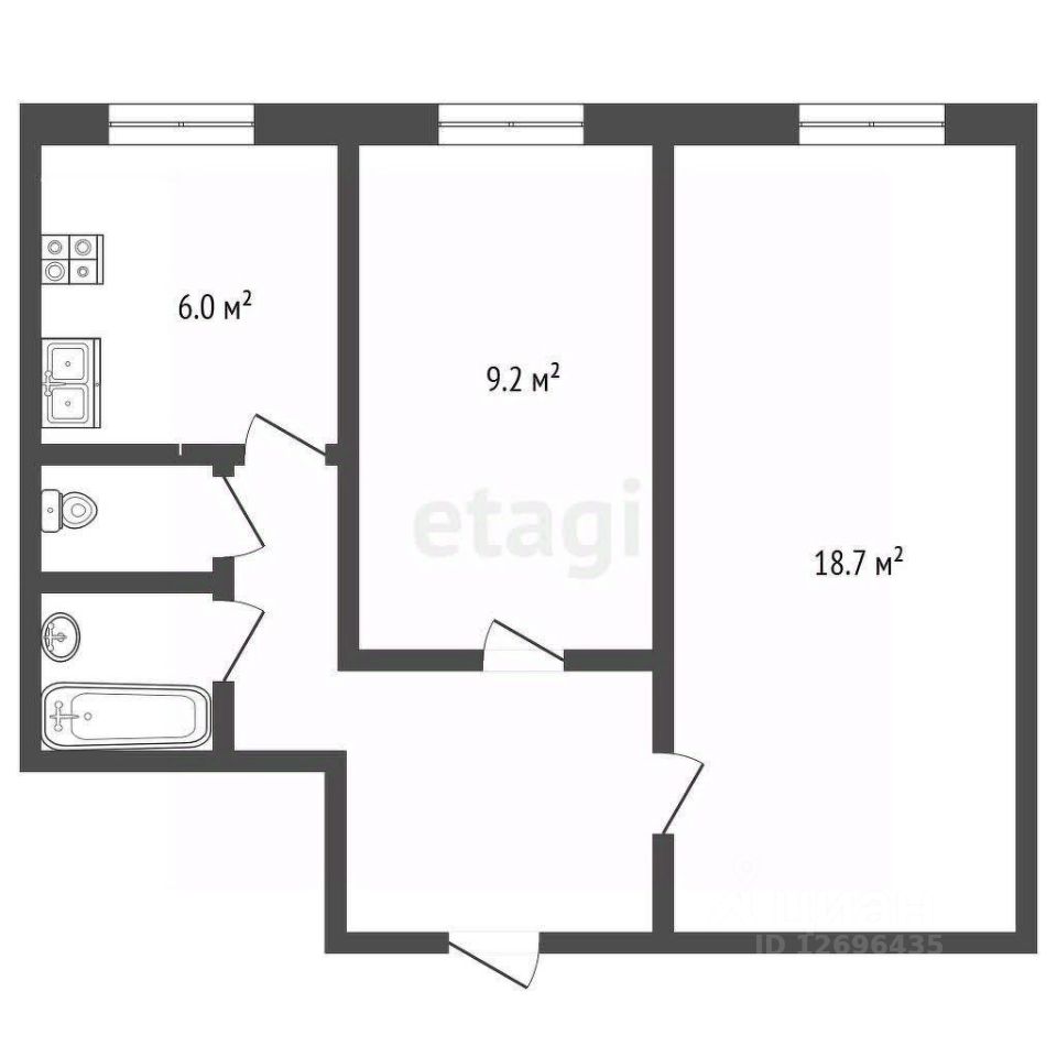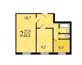 - 2 изолированные комнаты, окна выходят во двор: в квартире всегда солнечно и светло; жилая 27.9кв.м (комнаты 9,2 кв.м, 18,7 кв.м.) А также небольшая кухня 6кв.м.