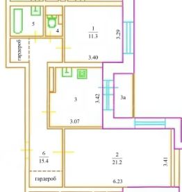 Планировка квартиры: кухня 10.5 кв.м, спальня 21 кв.м, детская 11 кв.м, раздельный санузел с ванной, две вместительные гардеробные, лоджия.