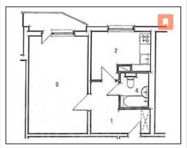 Квартира в хорошем состоянии, требуются незначительные улучшения. Большая светлая комната 19 кв.м. с балконом. Уютная кухня почти квадратной формы,.