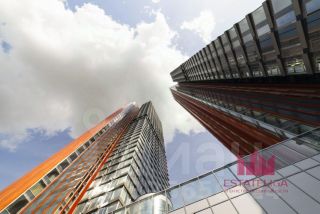 ЖК Eniteo представляет собой две 42-этажные башни, объединенные стилобатом. Эффектный фасад, выполненный из сочетания металла латунных оттенков и стекла, придает зданиям особый архитектурный стиль. На 39 этаже каждой башни расположены панорамные террасы, открывающие потрясающие виды на город. Комплекс оборудован современными лифтами, а также подземной парковкой и кладовыми для хранения.