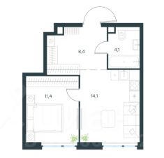 Планировка квартиры очень удачная: общая площадь 37,8 кв.м, кухня 14,1 кв.м, большая гардеробная 8,4 кв.м. В квартире один большой совмещенный санузул. Окна квартиры крупноформатные, начинаются 60см от пола, выходят на парк и долину реки, первый этаж очень высокий и виды просто потрясающие!
