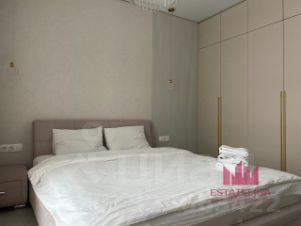 Внутри квартиры выполнен качественный стильный, только сданный ремонт. Все необходимое для комфортной жизни уже есть: современная мебель на кухне и в комнате, кондиционер, холодильник, посудомоечная и стиральная машины, а также 2 телевизора. Просторная ванная комната оснащена ванной, что позволяет расслабиться после длинного дня. Высокие потолки (3 метра) создают ощущение простора и свободы.