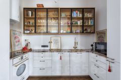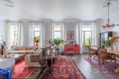 ID 64945: Воздушная трёхкомнатная квартира с ж/б перекрытиями в самом сердце Патриарших прудов. С высотой потолков 3,4 метра и безупречной отделкой в современном стиле пространство наполнено светом и элегантной лёгкостью. Нейтральная белая палитра послужила идеальным фоном для сочных акцентов в авторской мебели и декоре.