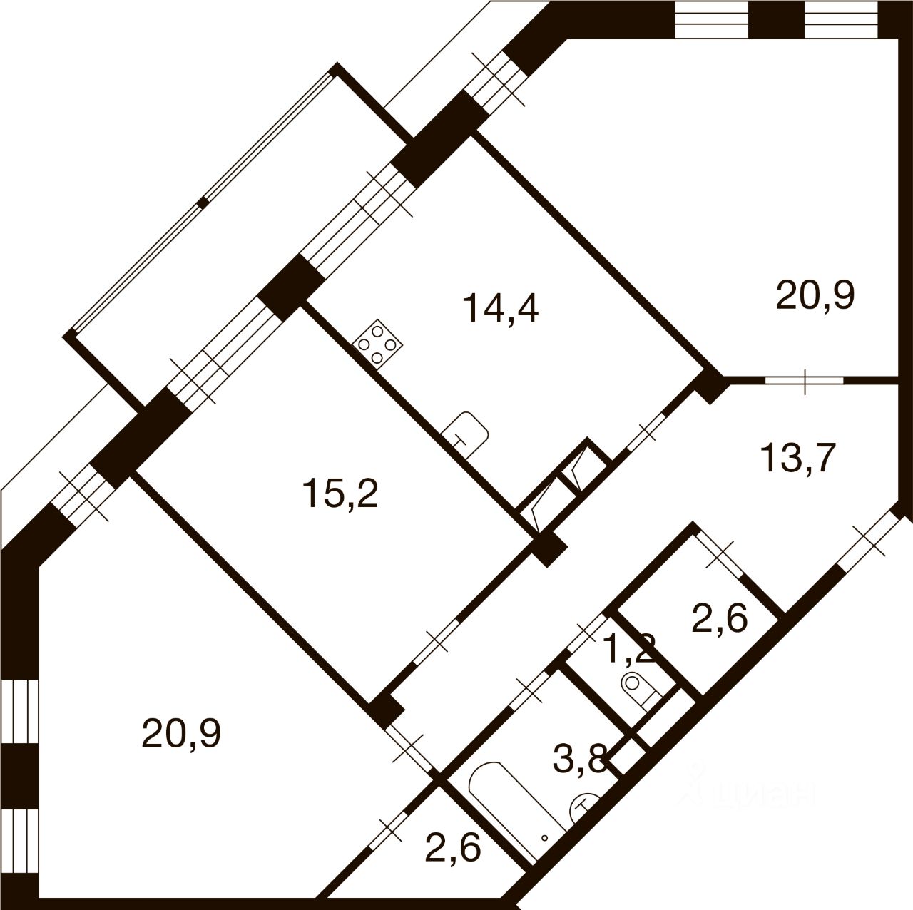 Общая площадь95,4 м²