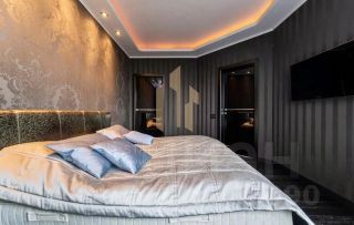 Также квартира оснащена мраморными подоконниками, двухцветным потолком с эффектом шиммера, эксклюзивными светильниками с кристаллами Swarovski- все продумано до мельчайших деталей.