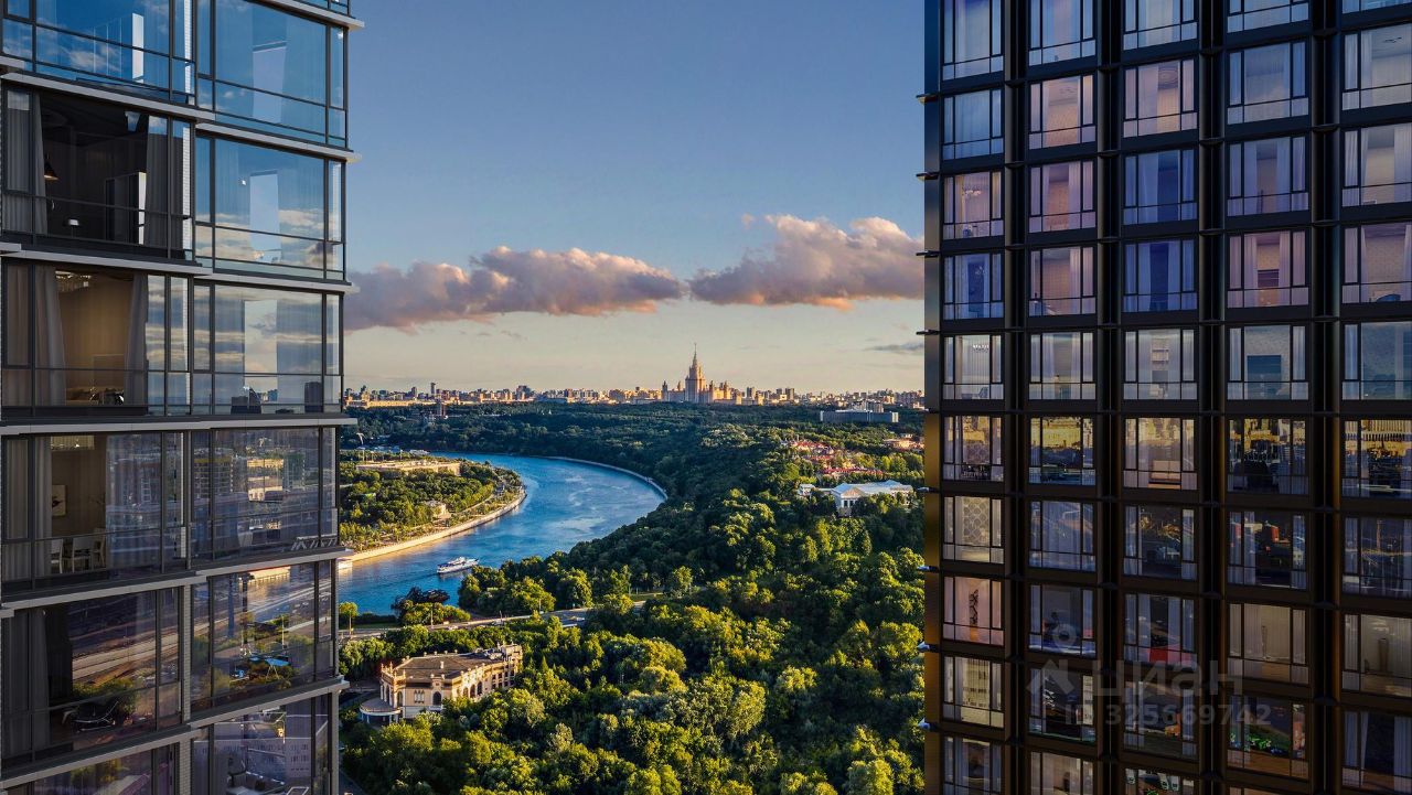 | Угловое расположение и панорамные виды на парк, МГУ и Москву-реку