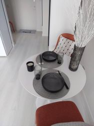 3. Зона столовой с обеденным столом, за которым смогут разместиться четверо;