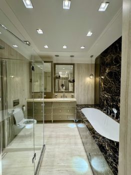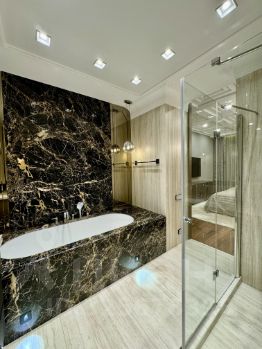 Выполнен высококачественный ремонт с использованием премиальных и натуральных материалов. Бытовая техника от ведущих немецких и итальянских производителей.
