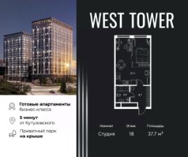Студия в West Tower- это идеальные апартаменты для индивидуальности. Простор открытой планировки, в сочетании с инфраструктурой комплекса и отличной экологией вокруг дают отличную основу для покорения вершин. Здесь только самое необходимое. Эти апартаменты больше других подобных подходят для зонирования. Можно легко отделить хоум офис от кухни, а пространство для приема гостей от зоны отдыха.