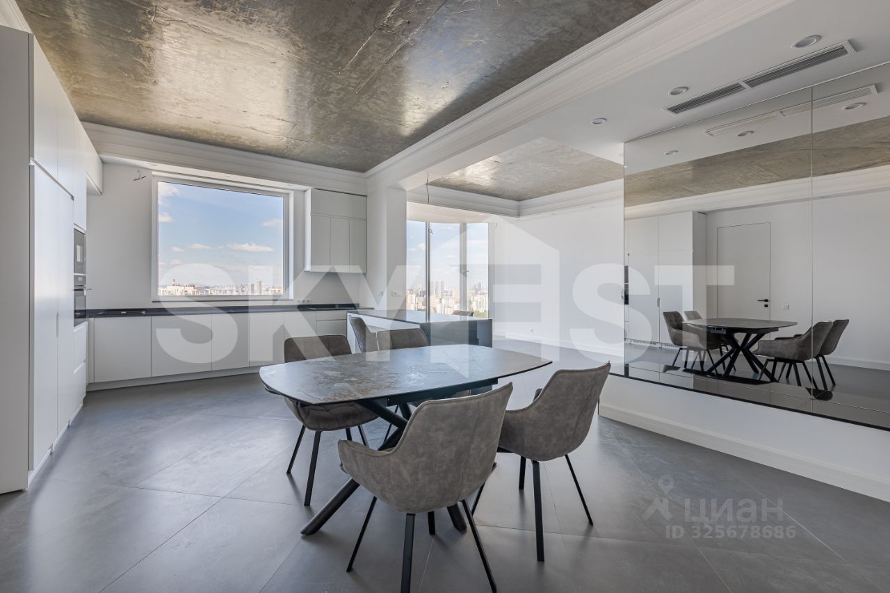 Видовой пентхаус общей площадью 191 м2. Жилой комплекс бизнес-класса "Елена". Проспект Вернадского, 105к4. Метро Юго-Западная, 5 минут пешком. Новый дизайнерский ремонт, установлена кухня-полностью укомплектована всей необходимой бытовой техникой премиум класса. Оборудованы с/у, гардеробные, зеркала, свет по всей квартире, установлена частично мебель (кровать, обеденный стол со стульями, диван и кофейный столик). Высокие потолки 3.1 м. Потрясающие панорамные виды на город.