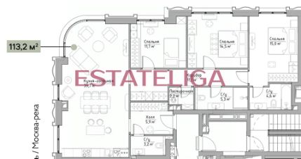 Отделка от застройщика (WhiteBox).КОРПУС-8 "ХАМФРИ" ! Есть возможность "ОБЪЕДИНЕНИЯ" с соседней 4-комнатной квартирой, заполучив 226,4 квм. и прекрасные виды на исторический центр Москвы.