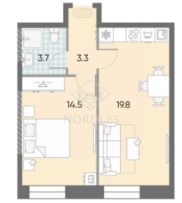 Продается квартира (планировка евро-2). Общая площадь 41,3 м кв.