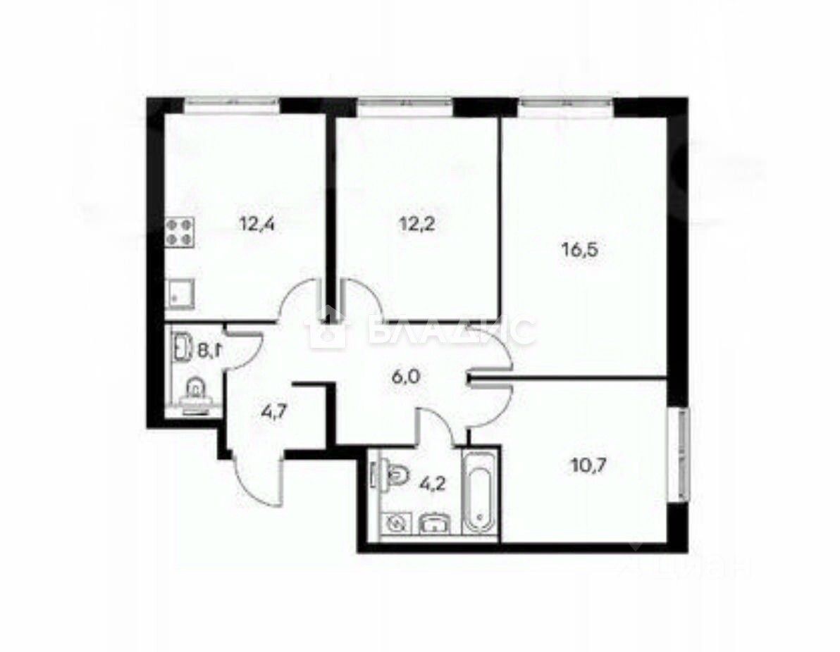 Продаётся трёхкомнатная квартира площадью 67,7 кв. м на 15-м этаже 25-этажного дома, построенного в 2020 году. Дом расположен по адресу: Боровское шоссе, 2к2.