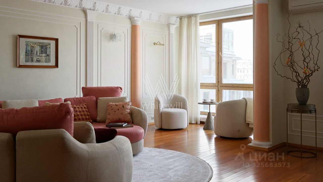 Просторная видовая квартира на 7 этаже с тремя спальнями общей площадь 155 м² в доме премиум-класса "Страстной бульвар, 10" в Тверском районе.