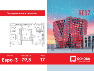 Продаются 3-к апартаменты площадью 79.5 кв.м. на 17-м этаже 19 этажного дома в RED7 от ГК ОСНОВА.