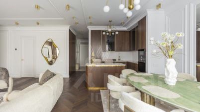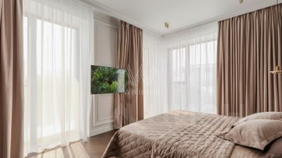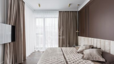 Квартира с 2 спальнями общей площадью 112 м² в комплексе Will Towers. Квартира с дизайнерской отделкой расположена на 5 этаже в корпусе Energy. Интерьер оформлен в неоклассическом стиле с использованием натуральных материалов. Квартира укомплектована мебелью и бытовой техникой.