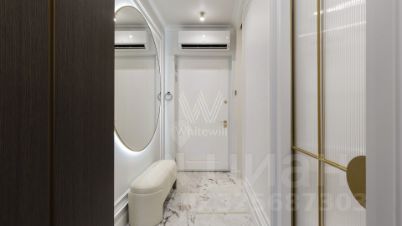 Установлена система индивидуального кондиционирования. Спланированы просторная кухня-гостиная с обеденной и ТВ зонами, мастер-спальня, детская спальня, гардеробная, 2 санузла, холл. Панорамные окна, ориентированные на две стороны света, открывают виды на благоустроенную территорию комплекса.
