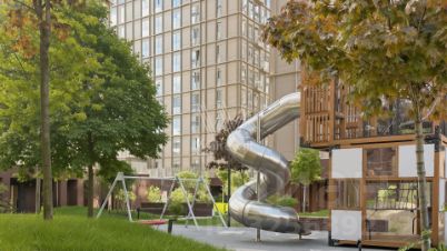 Главное о доме. Lucky — городской квартал на Пресне с ансамблем башен и камерных корпусов и дворами без машин. Фасады играют кирпичом и стеклом, а большие окна тянут внутрь свет и панорамы делового центра. На стилобате устроили прогулочные бульвары, садовые комнаты, детские и спортивные площадки. В лобби — мягкие зоны, стойка ресепшн и спокойные натуральные материалы, ощущение городского клуба считывается с порога. Внутри квартала работают общественные пространства для встреч и работы, есть фитнес-зона с бассейном и зонами восстановления. На первых этажах — кафе, пекарни и повседневные сервисы. Под землёй расположен многоуровневый паркинг с лифтовым доступом к корпусам.