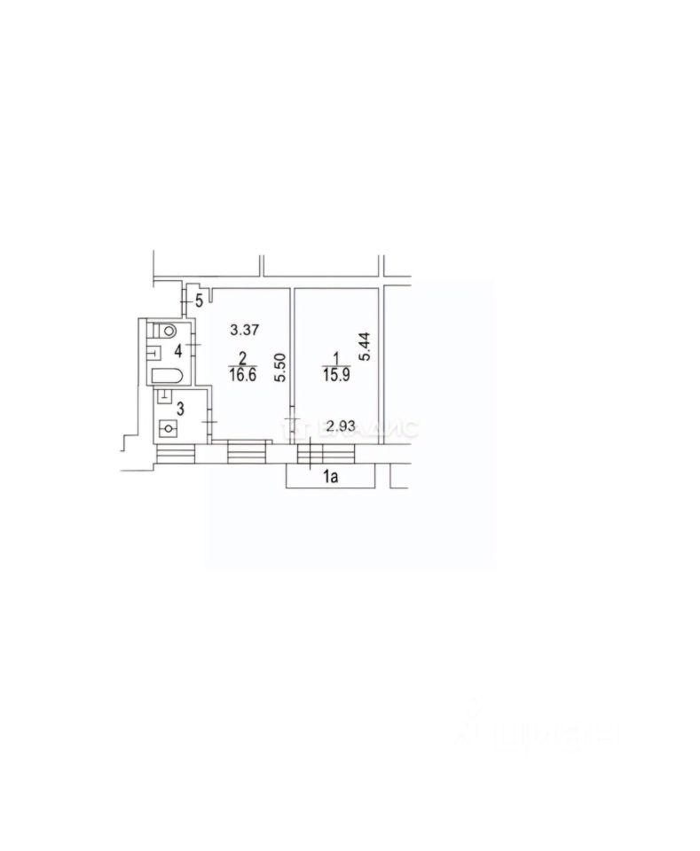 Общая площадь 43,7 кв.м, узаконенная перепланировка.