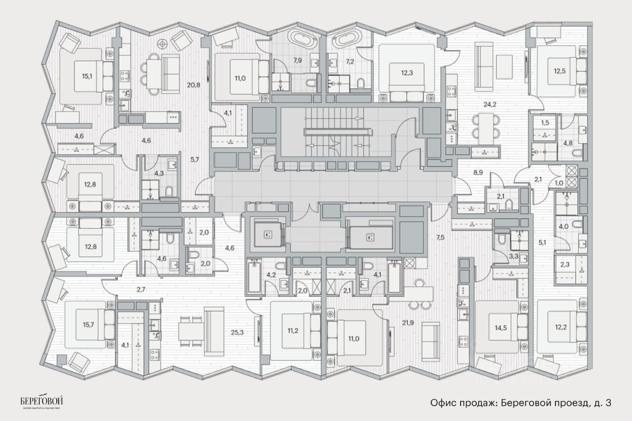 Береговой — квартал курорт в центре столицы. Пешеходная набережная начинается от дома: никаких дорог между вами и рекой. Уникальное сочетание природы парка Фили и ритма Сити.