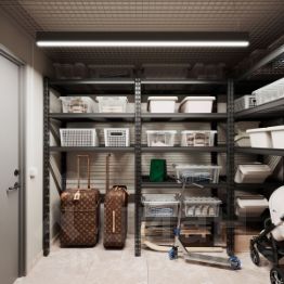 Двухуровневый паркинг рассчитан на 186 автомобилей и 27 гостевых мест. Есть возможность зарядки электромобилей, удобный подъезд для грузового транспорта, келлеры для хранения личных вещей и помещение для велосипедов.