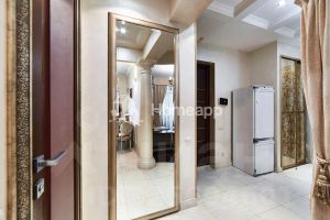 Квартира после капитального ремонта: заменена электропроводка, все стояки, смонтированы "тёплые полы", установлены фильтры воды и бойлер на случай отключения горячей воды. Выполнен дизайнерский ремонт, который включает в себя паркетное покрытие, венецианскую штукатурку, элегантные шторы, мебель и итальянские люстры. Квартира оснащена немецкой техникой и итальянской сантехникой, гарантирующими высокое качество и надёжность.