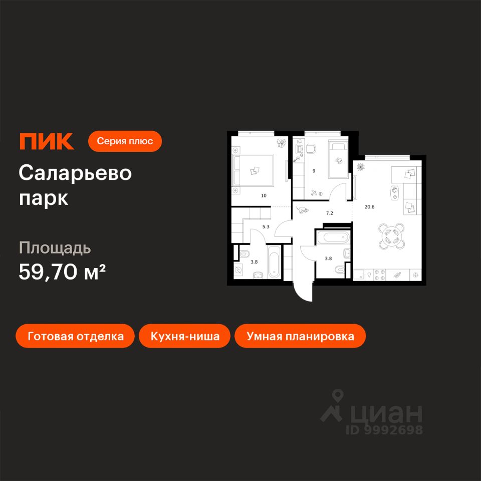 Продаётся 2-комн. квартира площадью 59,7 кв.м на 2 этаже 24 этажного дома (Корпус 82.7, Секция 7) проекта ПИК Саларьево парк. Светлый просторный подъезд на уровне земли, функциональная планировка, большие окна, c отделкой.