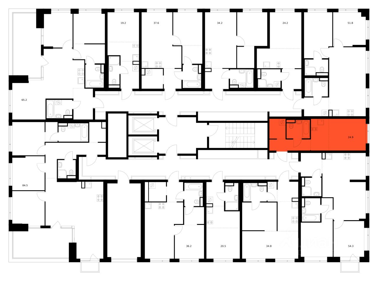 Продаётся квартира-студия площадью 24,9 кв.м на 13 этаже 16 этажного дома (Корпус 2.6/1.4, Секция 4) проекта ПИК Бунинская набережная. Светлый просторный подъезд на уровне земли, функциональная планировка, большие окна, c отделкой.