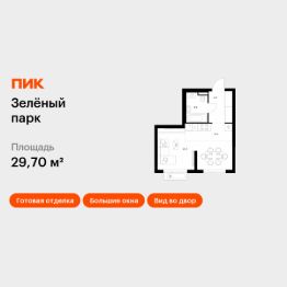 Продаётся квартира-студия площадью 29,7 кв.м на 13 этаже 21 этажного дома (Корпус 5.2, Секция 1) проекта ПИК Зелёный парк. Светлый просторный подъезд на уровне земли, функциональная планировка, большие окна, c отделкой.
