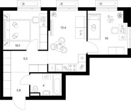 Продаётся 2-комн. квартира площадью 46,8 кв.м на 11 этаже 13 этажного дома (Корпус 5.3, Секция 2) проекта ПИК Зелёный парк. Светлый просторный подъезд на уровне земли, функциональная планировка, большие окна, c отделкой.