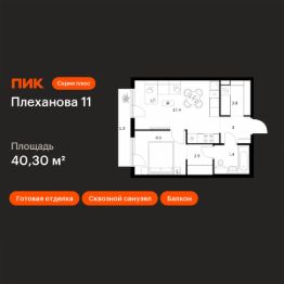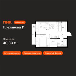 Продаётся 1-комн. квартира площадью 40,3 кв.м на 3 этаже 9 этажного дома (Корпус 1.2, Секция 2) проекта ПИК Плеханова 11. Светлый просторный подъезд на уровне земли, функциональная планировка, большие окна, c отделкой.
