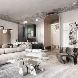Интерьеры Nicole разработаны известной английской студией HBA, обладают яркой индивидуальностью, словно каждому отдельному пространству отведена своя собственная роль. При этом все решения органично вписаны в единую дизайн-концепцию за счет использования общих лейтмотивов. Объединяющим элементом служит матовый никель, благородный блеск которого формирует особую эстетику восприятия.