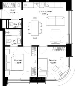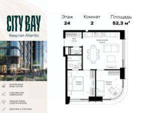 Продаётся 2-комнатная квартира общей площадью 52.30 м² с предчистовой отделкой в ЖК City Вау на 24-м этаже 53 этажного дома.