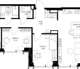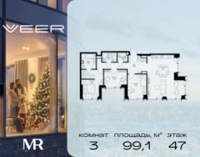 Продаётся 3-комнатная квартира общей площадью 99.10 м² без отделки в ЖК VEER на 47-м этаже 59 этажного дома.