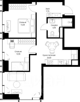 Продаётся 2-комнатная квартира общей площадью 60.50 м² без отделки в ЖК VEER на 35-м этаже 59 этажного дома.