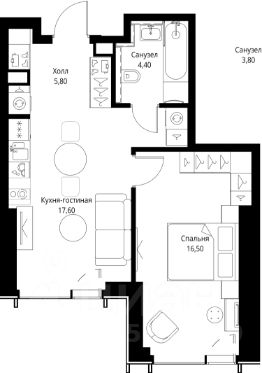 Продаётся 1-комнатная квартира общей площадью 44.30 м² без отделки в ЖК VEER на 38-м этаже 59 этажного дома.